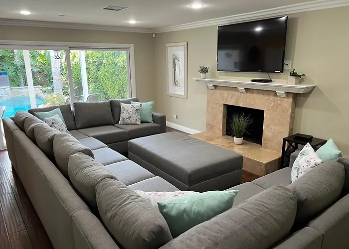 De 4-slaapkamer Highly Upgraded, 5 Bed, 45 Ba, New Pool W/Jacuzzi, 1/2 Mile Walk To Disney Anaheim villa ligt binnen 25 minuten wandelen van het Disneyland Resort en nodigt gasten uit om toeristische bestemmingen te verkennen. Dit vakantiehuis biedt gasten een ontspannende ervaring met een bubbelbad.